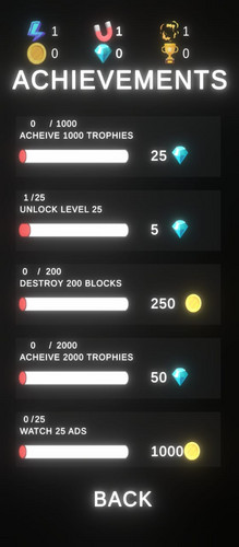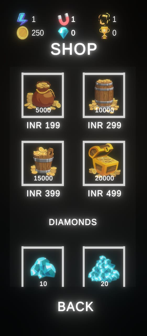 - These powerups can be bought through InAppPurchases , can be earned through completing acheivements and also by logging into game daily (Daily Rewards)